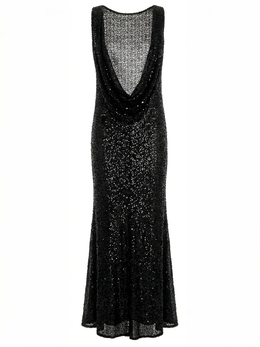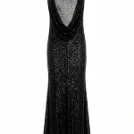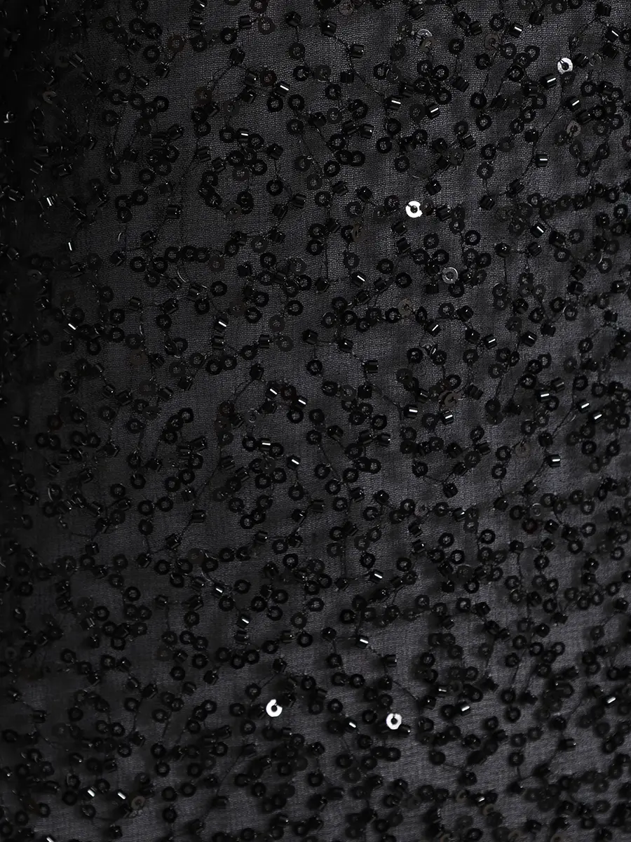 -Черное платье-макси, расшитое пайетками, от PHATEMM. -Модель с кроем по фигуре и открытой спинкой. -Лаконичное платье, в котором нет ничего лишнего, уместно дополнит коктейльные или вечерние мероприятия.
