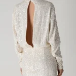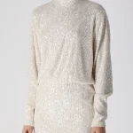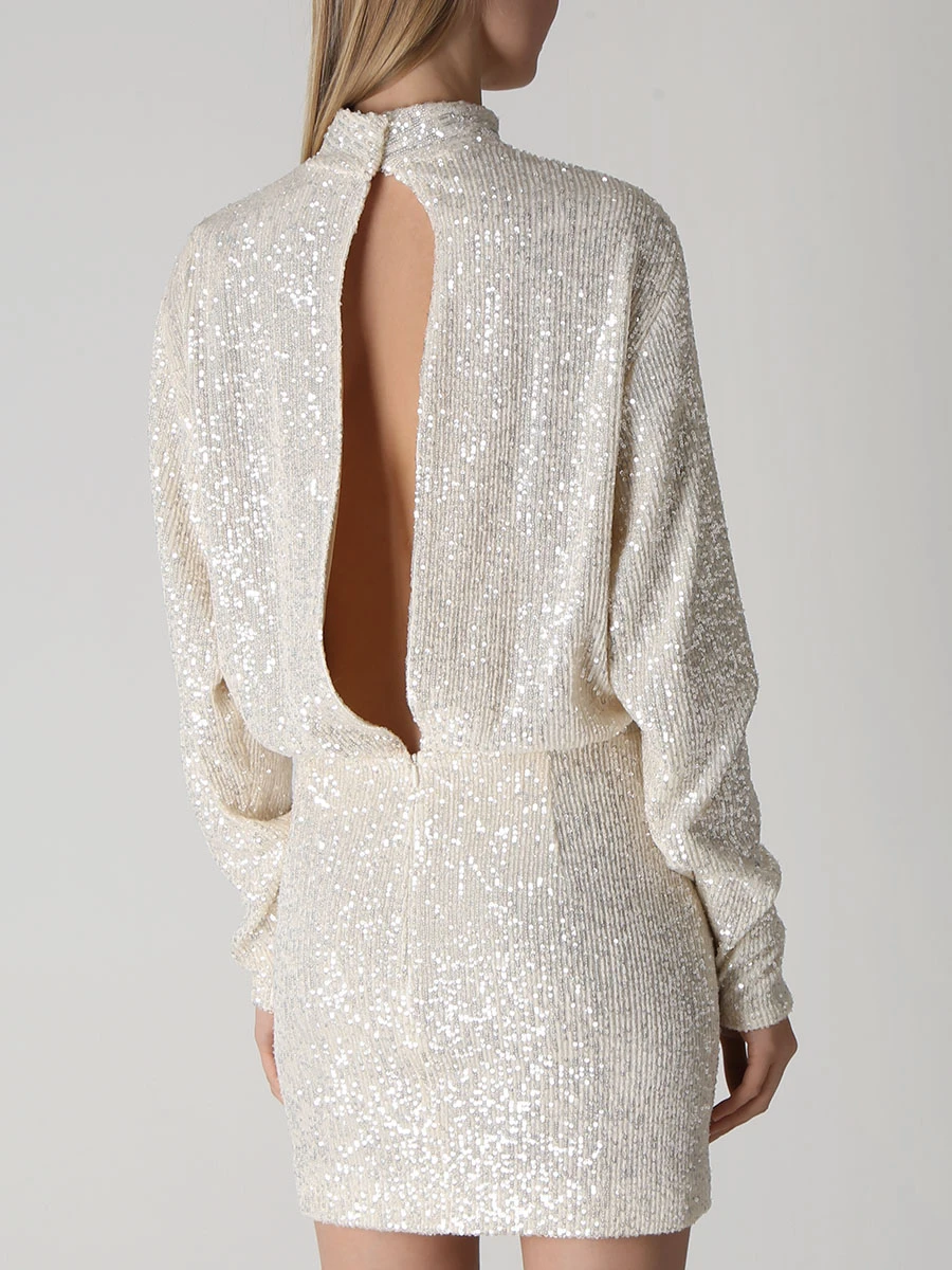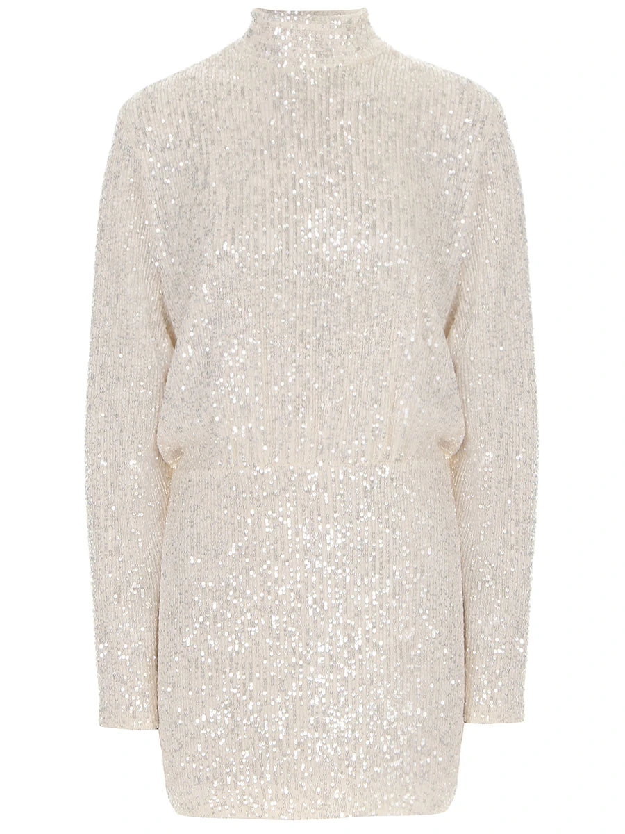-Кремовое мини-платье, расшитое мерцающими пайетками, от SASHAVERSE. -Модель лаконичного кроя, где сдержанный дизайн спереди компенсирует длина и глубокий вырез на спинке, которые максимально эффектно фигуру. -Пайетки красиво переливаются при любом освещении, поэтому в сочетании с босоножками на высоком каблуке и миниатюрным клатчем Ваш образ будет безупречным на любом вечернем мероприятии.