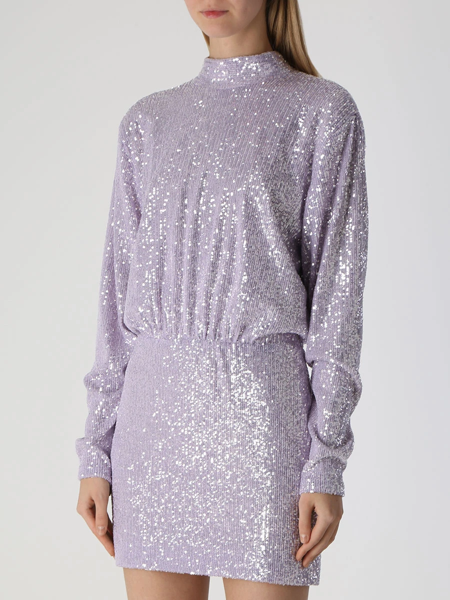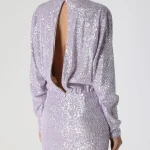 -Мини-платье, расшитое мерцающими пайетками, в нежном лавандовом оттенке от SASHAVERSE. -Модель лаконичного кроя, где сдержанный дизайн спереди компенсирует длина и глубокий вырез на спинке, которые максимально эффектно фигуру. -Пайетки красиво переливаются при любом освещении, поэтому в сочетании с босоножками на высоком каблуке и миниатюрным клатчем Ваш образ будет безупречным на любом вечернем мероприятии.