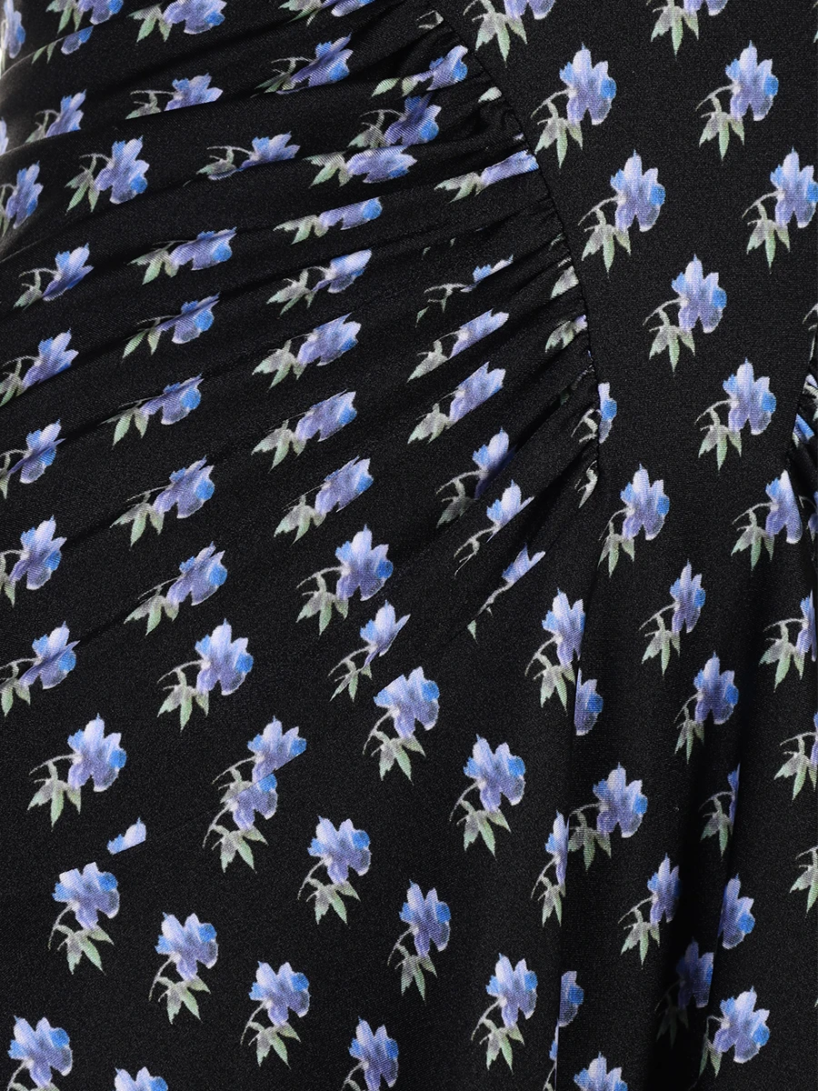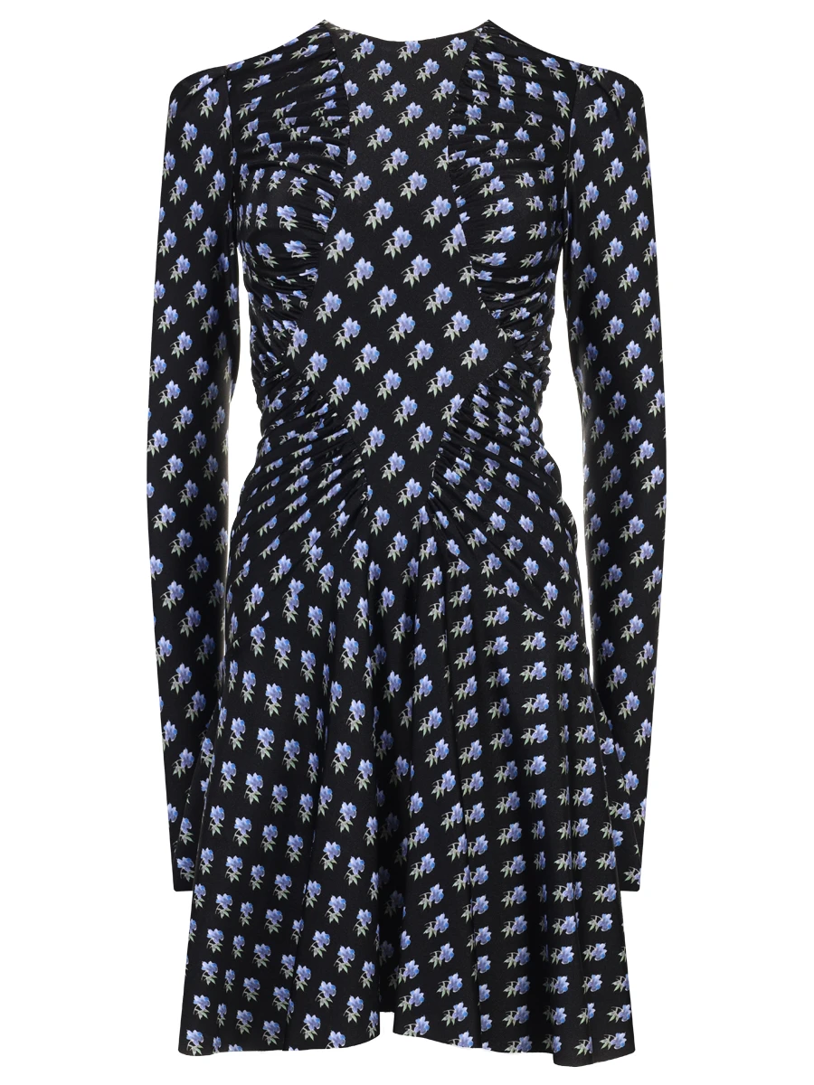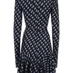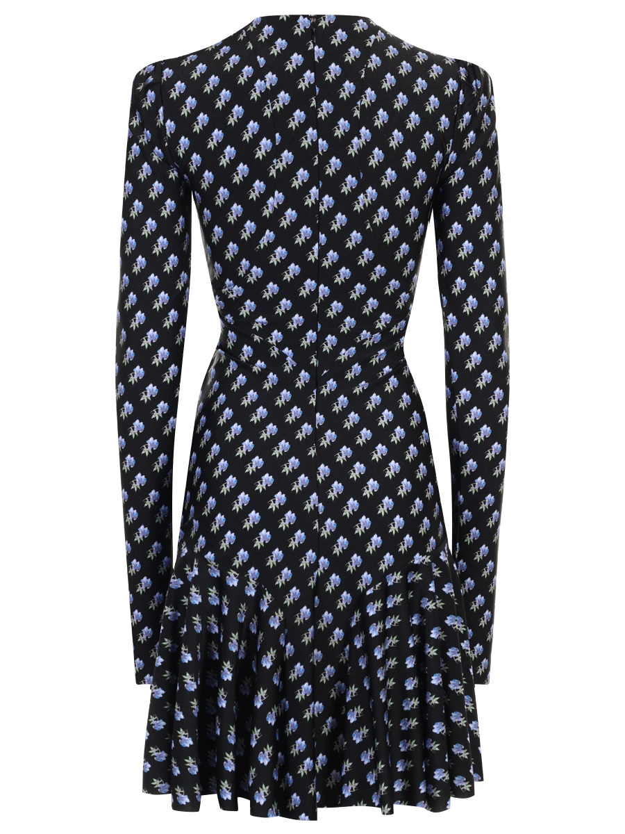 -Платье в черном цвете с принтом от PHILOSOPHY DI LORENZO SERAFINI. -Модель полуприлегающего кроя с длинными рукавами, объемным вырезом и застежкой на молнии. -Платье дополнит яркие вечерние образы с удобными туфлями.
