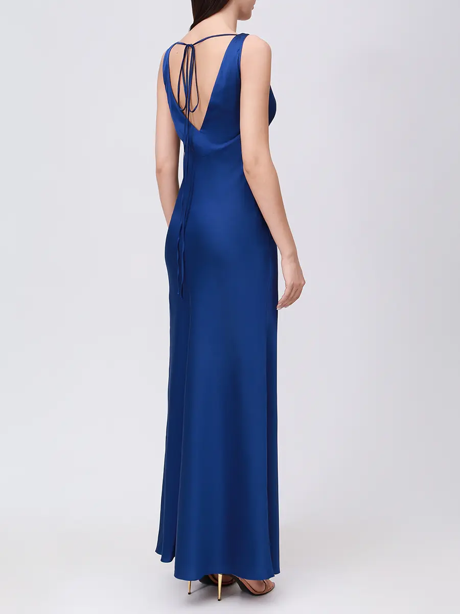 -Элегантное макси-платье от KAPSULA с утончённым вырезом-качелька, который добавляет мягкости образу. -Гладкая, шелковистая ткань красиво облегает фигуру, создавая струящийся силуэт. -Минималистичный дизайн и отсутствие рукавов делают это платье идеальным выбором для особых случаев, подчеркивая женственность и стиль.