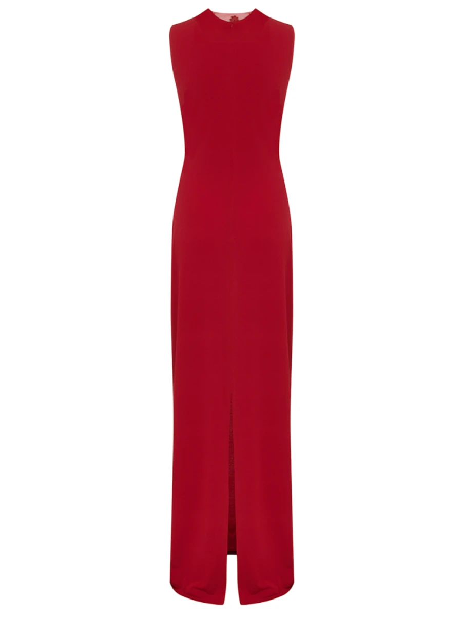 -Красное платье купажированного состава от LEFFERS. -Модель приталенного кроя без рукавов, застежкой на потайную молнию на спинке и разрезом сзади. -Платье для тех, кто не боится смелых решений. -Глубокий красный цвет, нежная ткань, силуэт, визуально вытягивающий фигуру и, конечно же, прозрачный вырез с вышивкой, как квинтэссенция женственности и соблазна. -Изделие настолько самодостаточно, что не нуждается в ярких дополнениях.