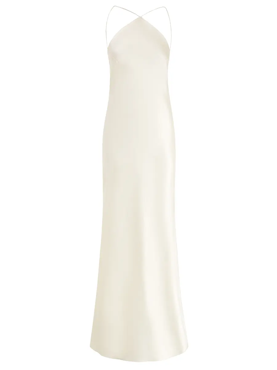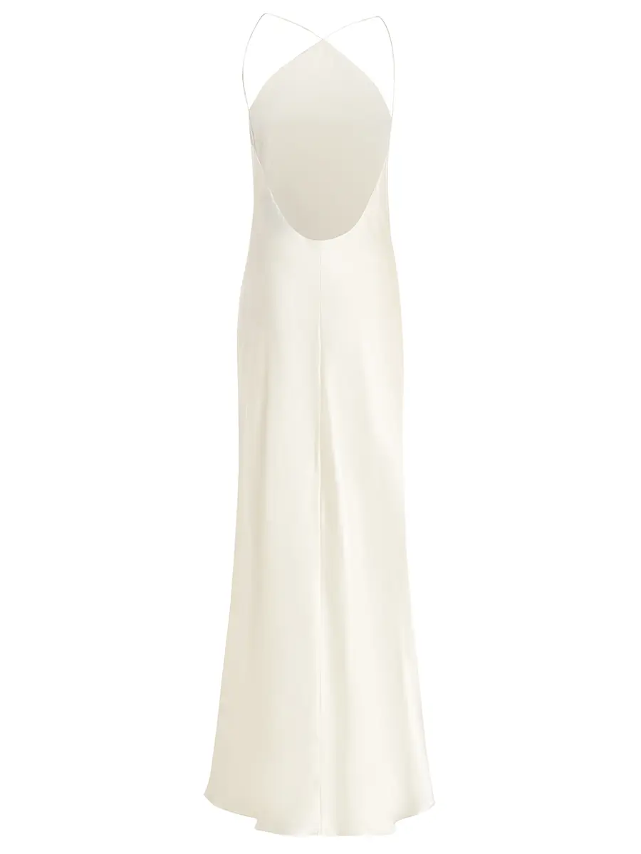 -Платье-макси из шелка в кремовом цвете от GODS OF FAME. -Модель с открытой спинкой скроена по косой, что обеспечивает идеальную посадку по фигуре. -Лаконичное платье, в котором нет ничего лишнего, уместно дополнит коктейльные или вечерние мероприятия.