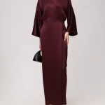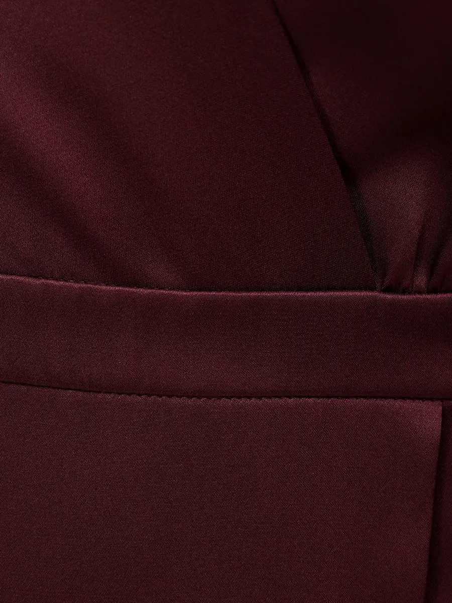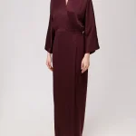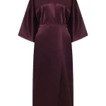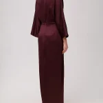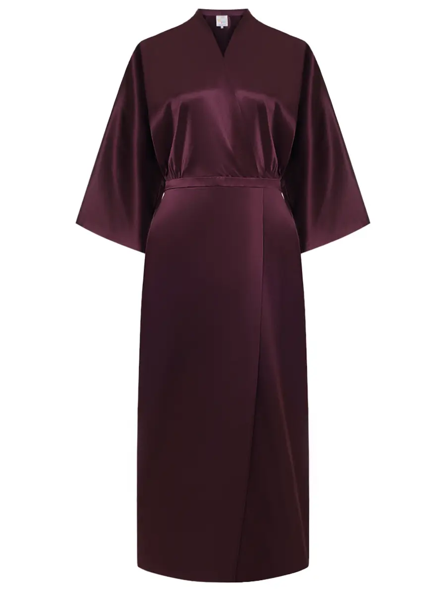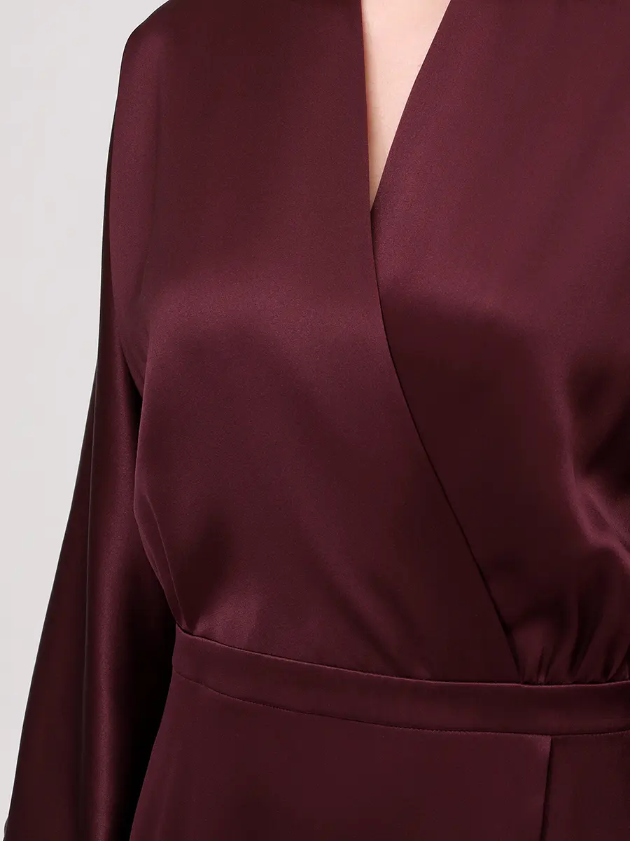 -Платье-макси из шелка сливового цвета от OLOLOL. -Модель с акцентом кроя на талии, укороченными рукавами длины 3/4, V-образным запахом на груди, застежкой на потайную молнию.