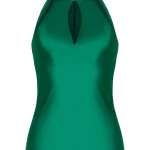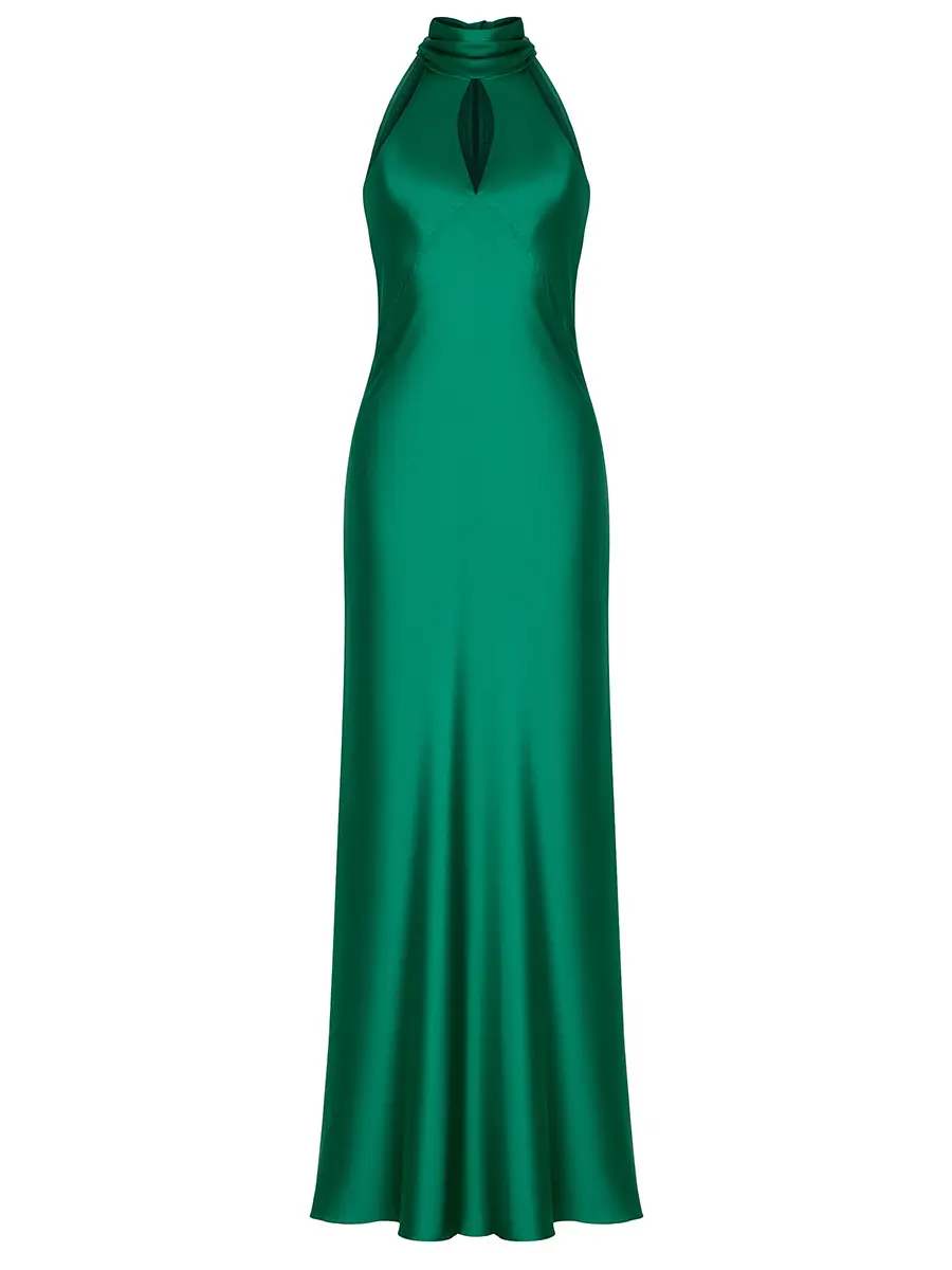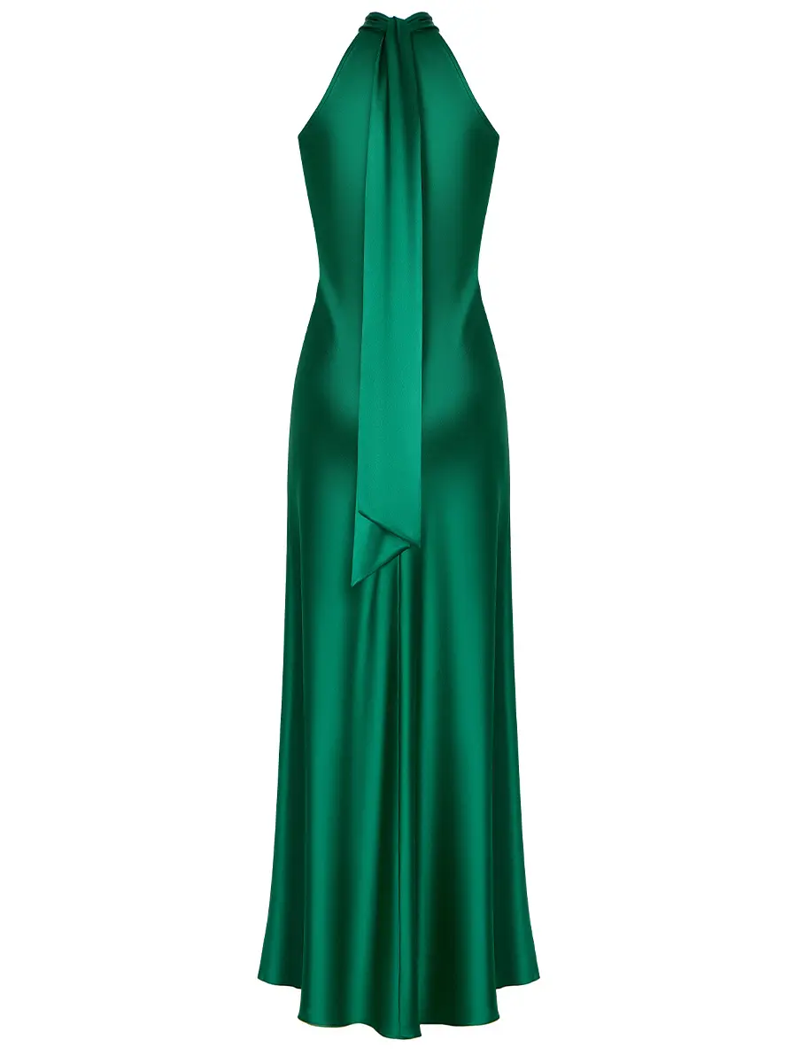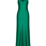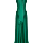 -Платье из нежного шелка в изумрудном цвете от ST. ERME. -Модель приталенного кроя, деликатно облегающего талию и бедра, с вырезом-каплей на груди и воротником-стойкой с длинными завязками на бант. -Классические линии кроя платья идеально обрисовывают женственный силуэт.