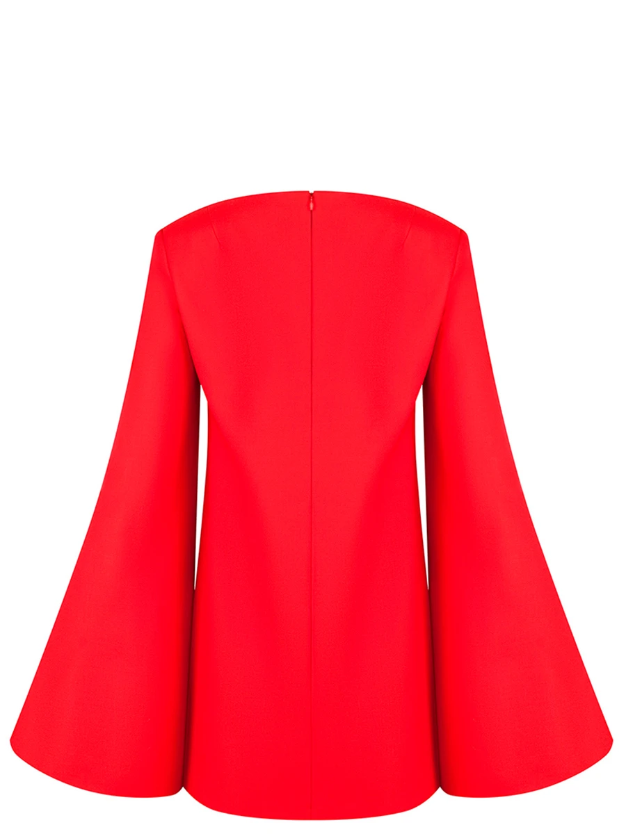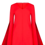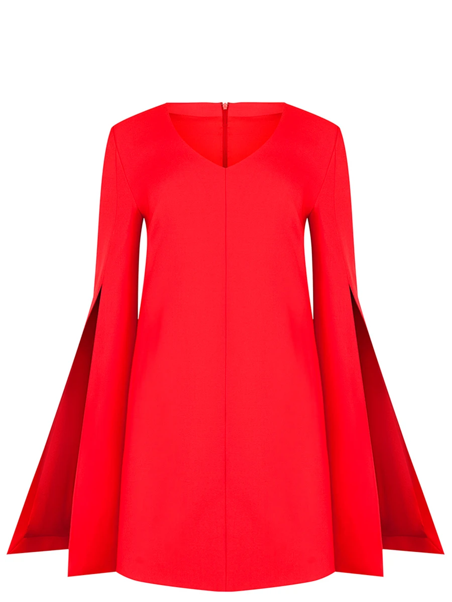 -Красное платье-кейп из смесовой шерсти от SHERVARLI. -Модель приталенного силуэта с длинными рукавами оригинального кроя, V-образным вырезом горловины и застежкой на молнию на спинке.