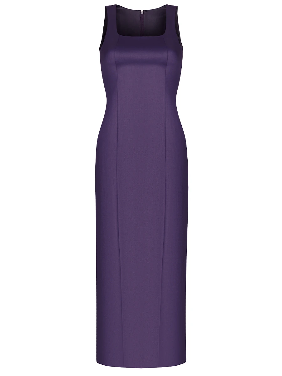 -Лаконичное платье-макси из шерсти от ST. ERME. -Крой модели повторяет изгибы тела, подчеркивая талию и бедра, вырез-каре, шлица, застежка на потайную молнию.