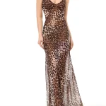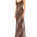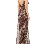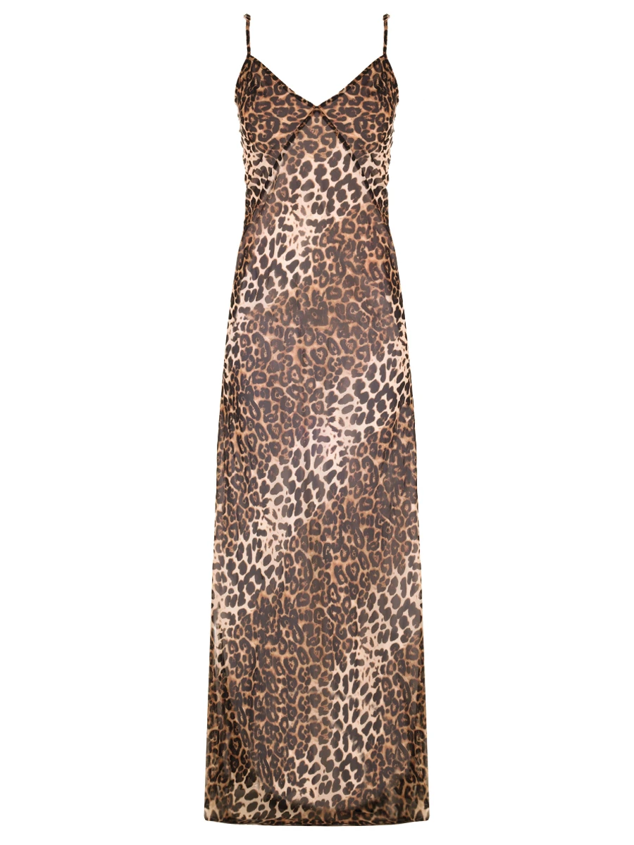 -Платье-комбинация с леопардовым принтом из легкого шифона от ANY CASHONLYFUN. -Модель приталенного кроя с тонкими регулируемыми бретелями, V-образным декольте и глубоким вырезом на спине. -Платье идеально подходит для особых событий, таких как свадьбы, праздники или другие торжественные мероприятия.