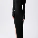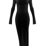 -Трикотажное платье-макси тонкой вязки из мягкой вискозной пряжи от NUDE STORY. -Облегающий силуэт, глубокий разрез по ножке и открытая спинка со шнуровкой — детали, создающие главные акценты. -Круглая горловина, длинные рукава. -Платье макси поможет создать элегантный лаконичный образ.