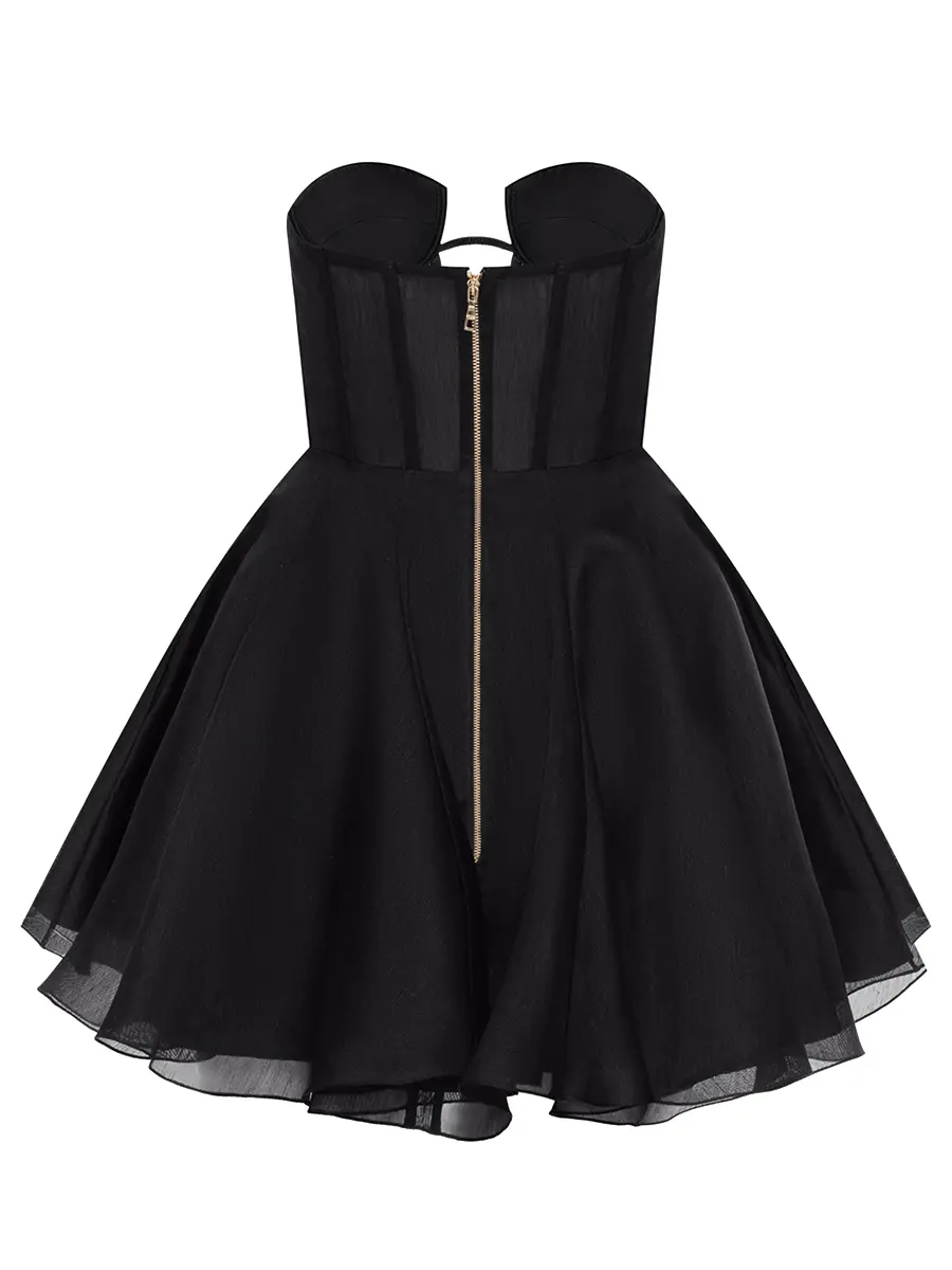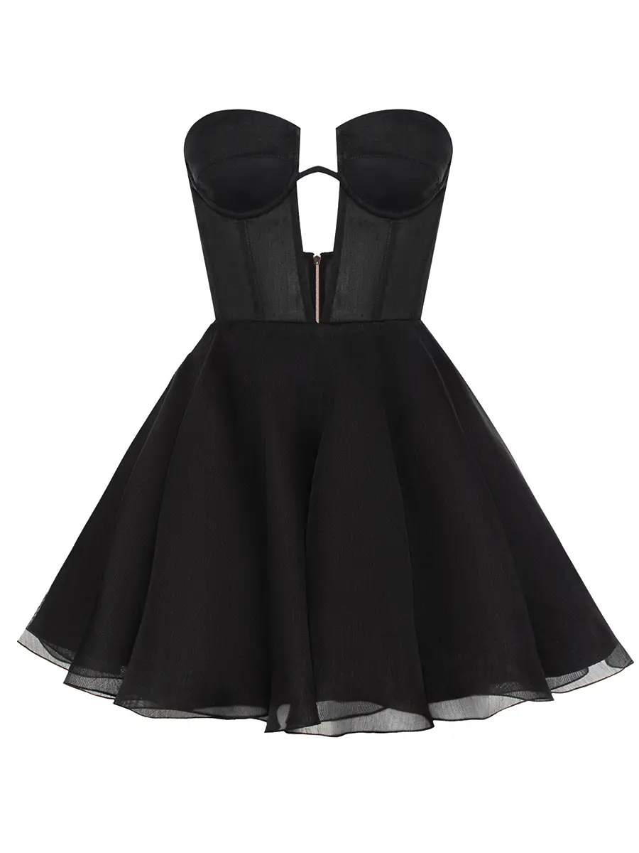 -Черное мини-платье PIVOINE из льна и шелка от YVON. -Изящное платье из струящегося шелка с летящим силуэтом и выразительным декольте. -Это платье станет идеальным выбором для создания изысканного и запоминающегося образа.