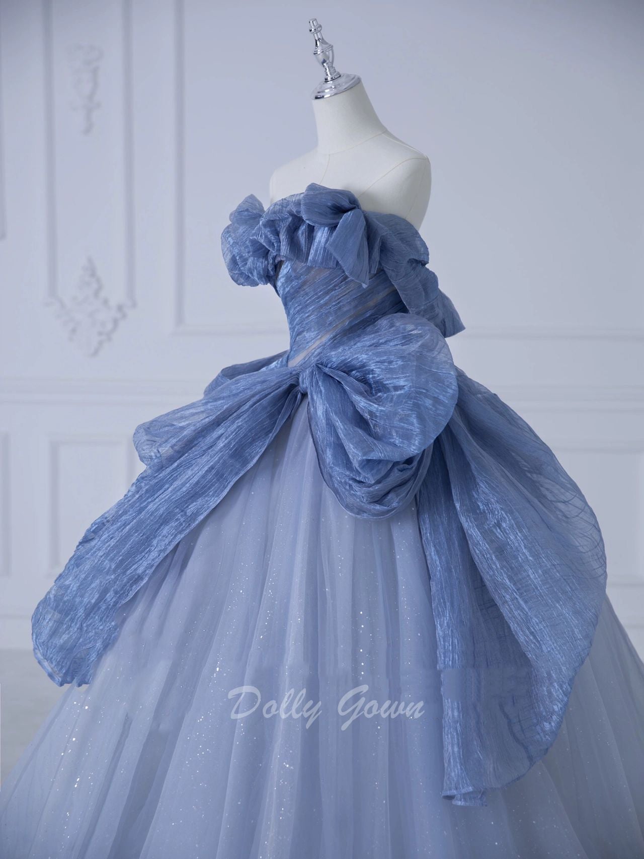 Асимметричное бальное платье без бретелек Пыльно-синее свадебное платье
