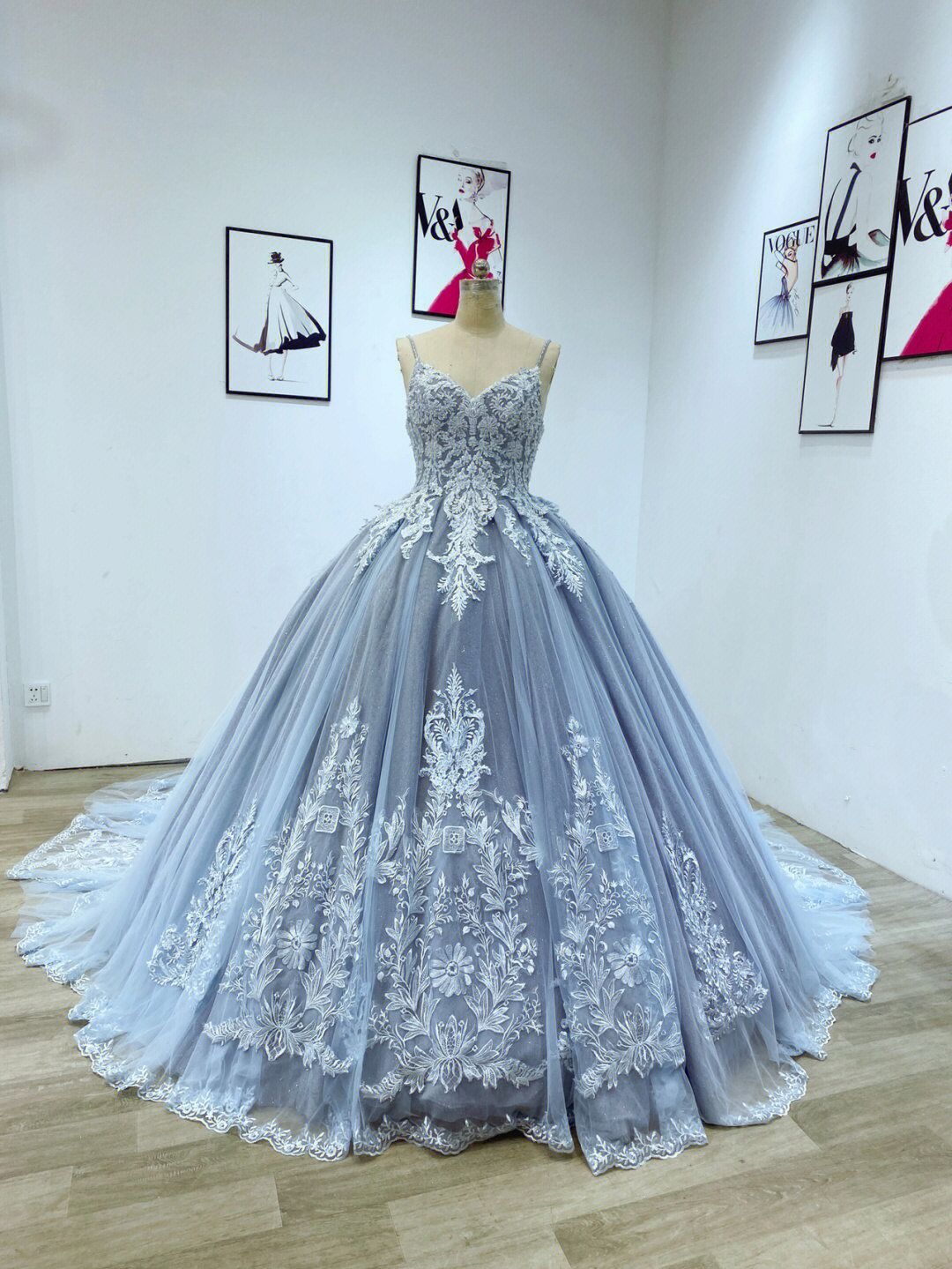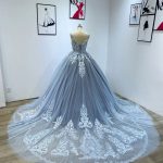 Гламурное свадебное платье пыльно-синего цвета