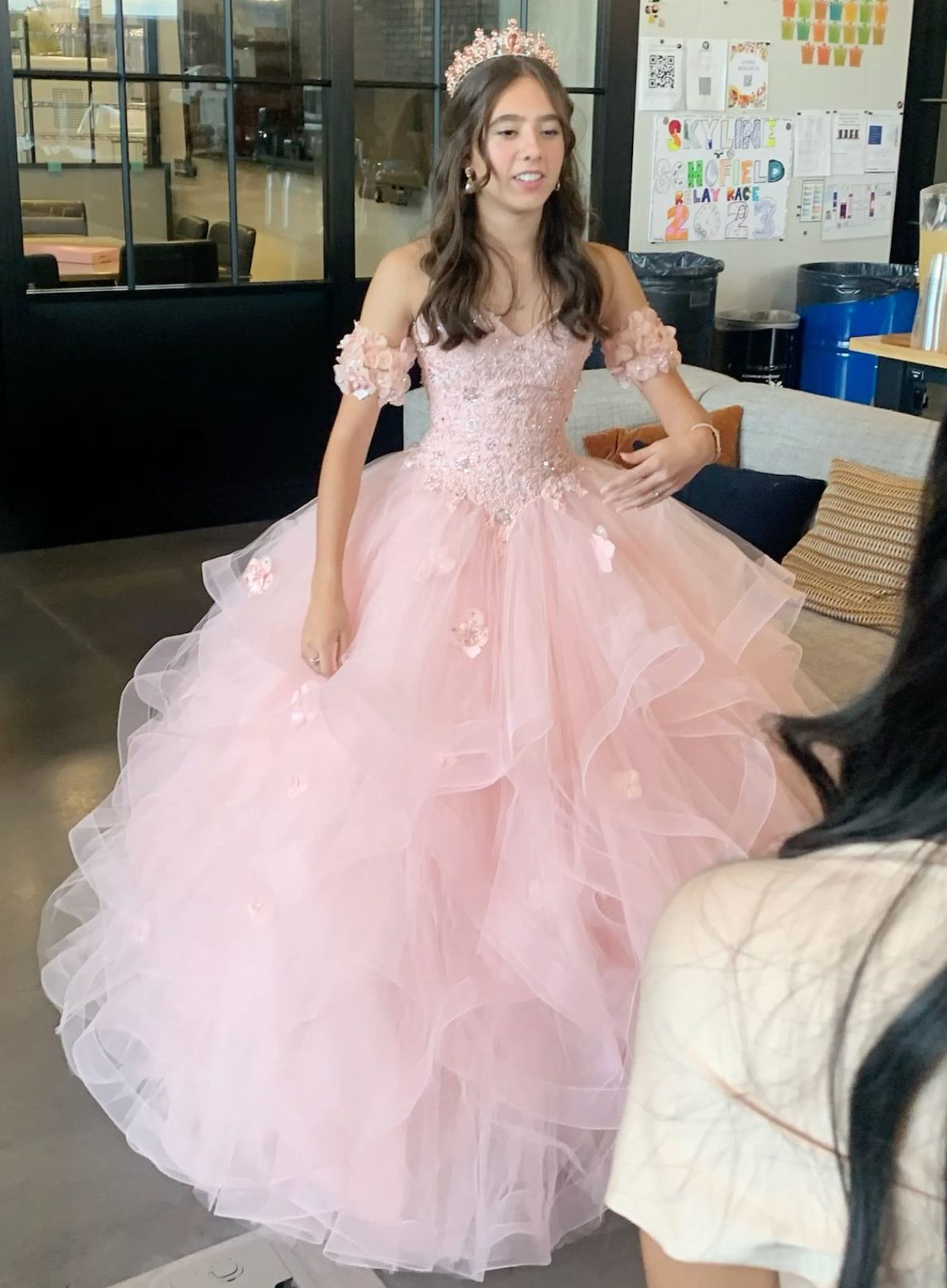 Мягкие слои тюля и изящные аппликации создают объемный силуэт бального платья, идеально подходящего для празднования 15-летия и 16-летия. Лиф без рукавов в форме сердца имеет встроенный бюстгальтер и шнуровку на спине для регулируемой формы и надежной поддержки. Полностью на подкладке из атласа и усиленная несколькими слоями подъюбника, юбка хорошо держит форму, оставаясь при этом удобной для движений. Тщательно продуманная отделка и детали ручной работы с аппликациями создают эффектный торжественный образ для важных событий.