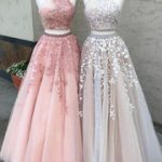 Скромное Длинное Платье Для Выпускного Вечера Для Подростков, Вечернее Платье Из Двух Частей С Кружевом И Тюлем Для Первокурсников