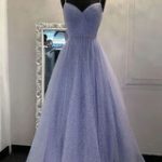 Вечернее Платье Для Выпускного Вечера Из Блестящего Тюля Лавандового Цвета С Тонкими Бретельками