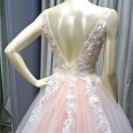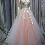 Прозрачное платье для выпускного вечера из тюля лавандового цвета с кружевным верхом