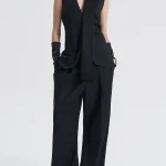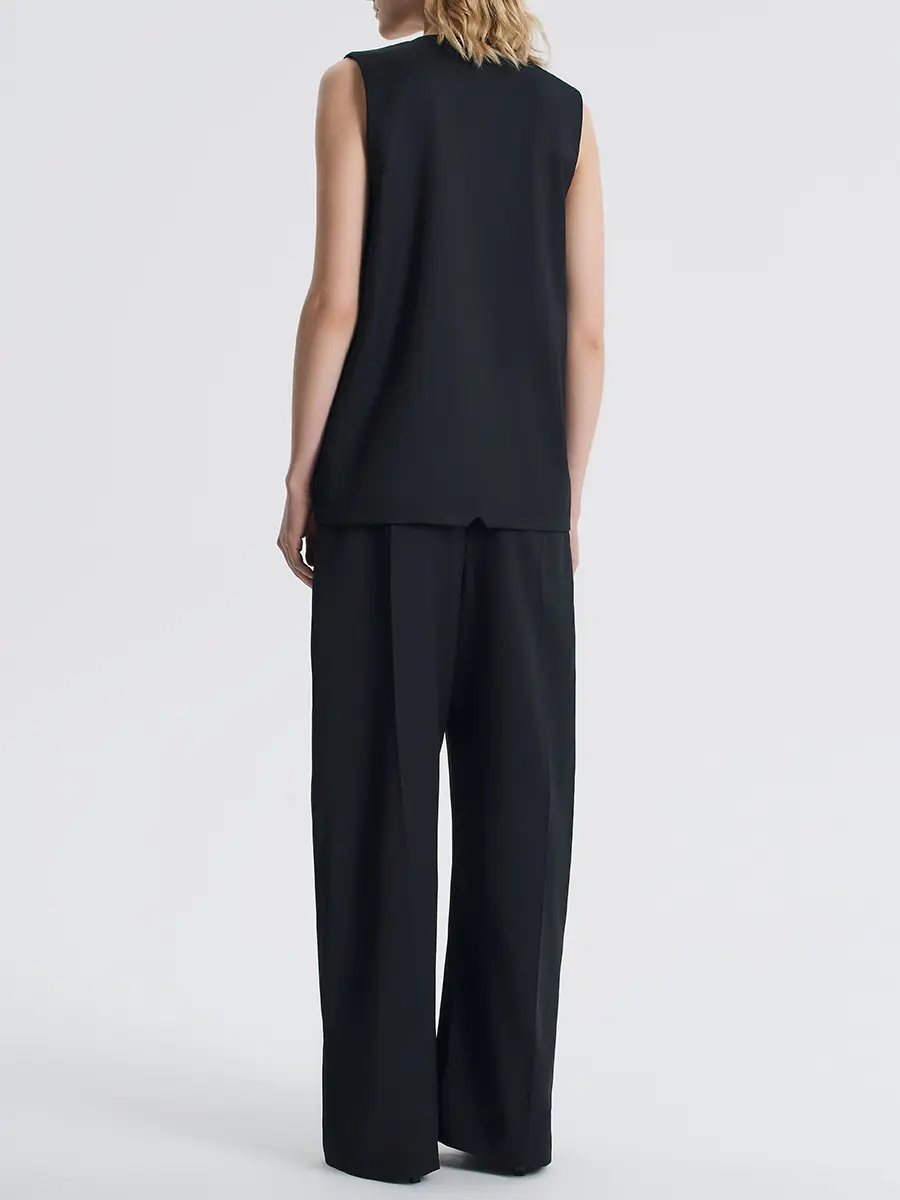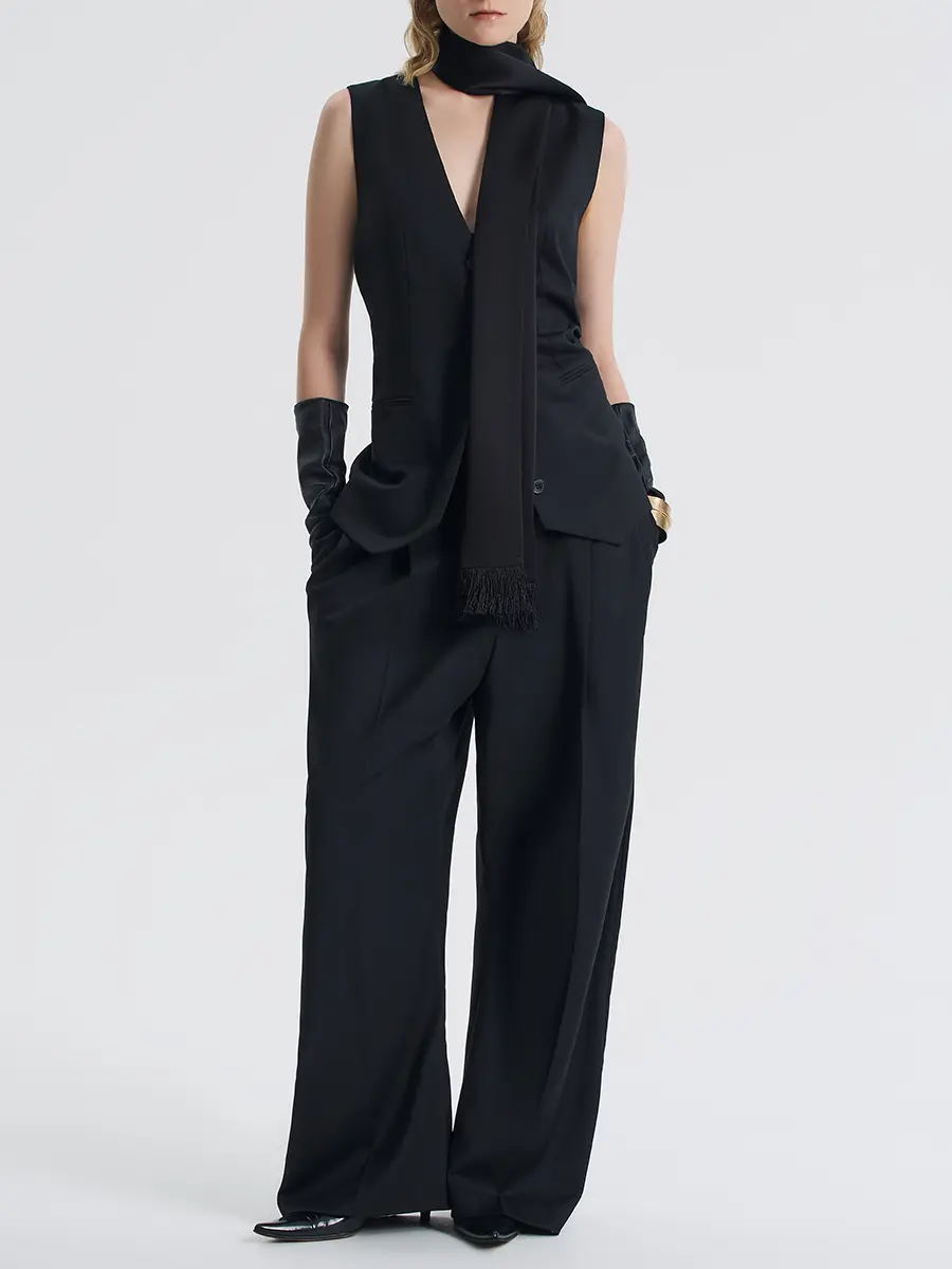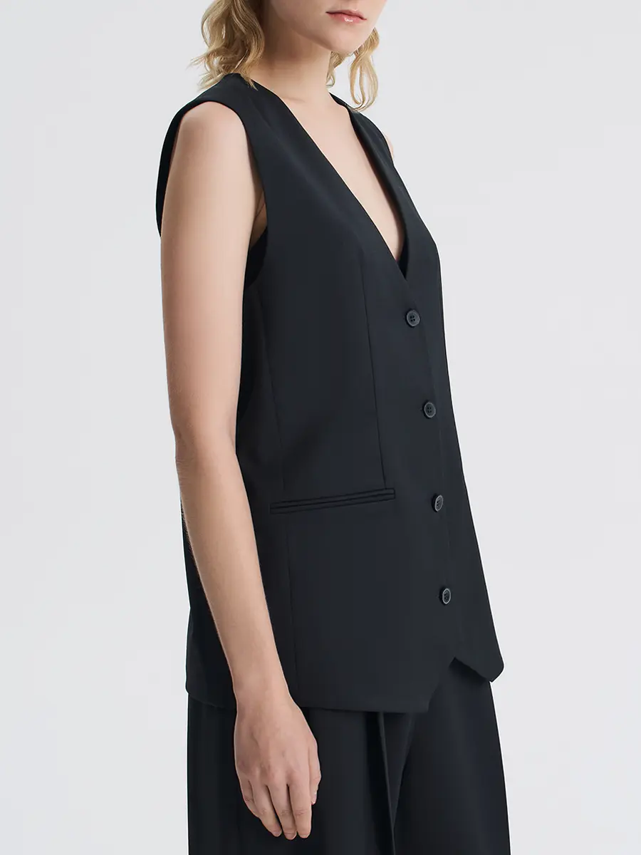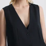 -Жилет из смесовой шерсти в черном цвете от FASHION REBELS. -Жилет оверсайз из смесовой шерсти не случайно представлен в рамках новогодней капсулы 2026 г.: стилизуйте его как топ в комплекте с брюками из такого же материала для строгих и элегантных вечерних образов. -За рамками светских выходов жилет отлично впишется в деловой и повседневный гардероб в сочетании с блузками и водолазками. -Жилет классического кроя с формообразующими вытачками сделан в подчеркнуто расслабленном варианте оверсайз. -Изделие на шелковистой подкладке.